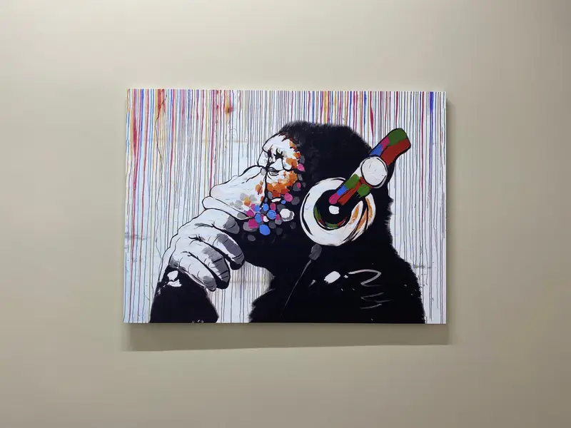 Vibrant Monkey Canvas: Abstract Art for Music Lovers
