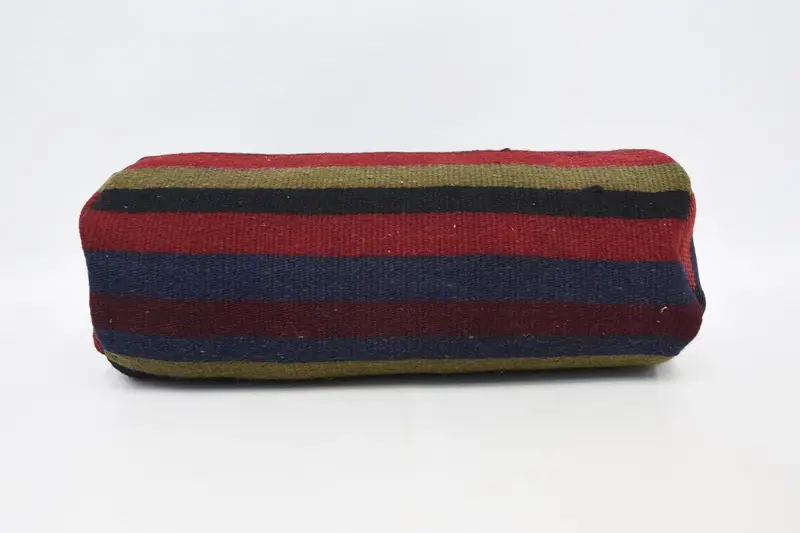 Red & Bronze Wool Cushion, Vintage Handmade Decorative Pillow