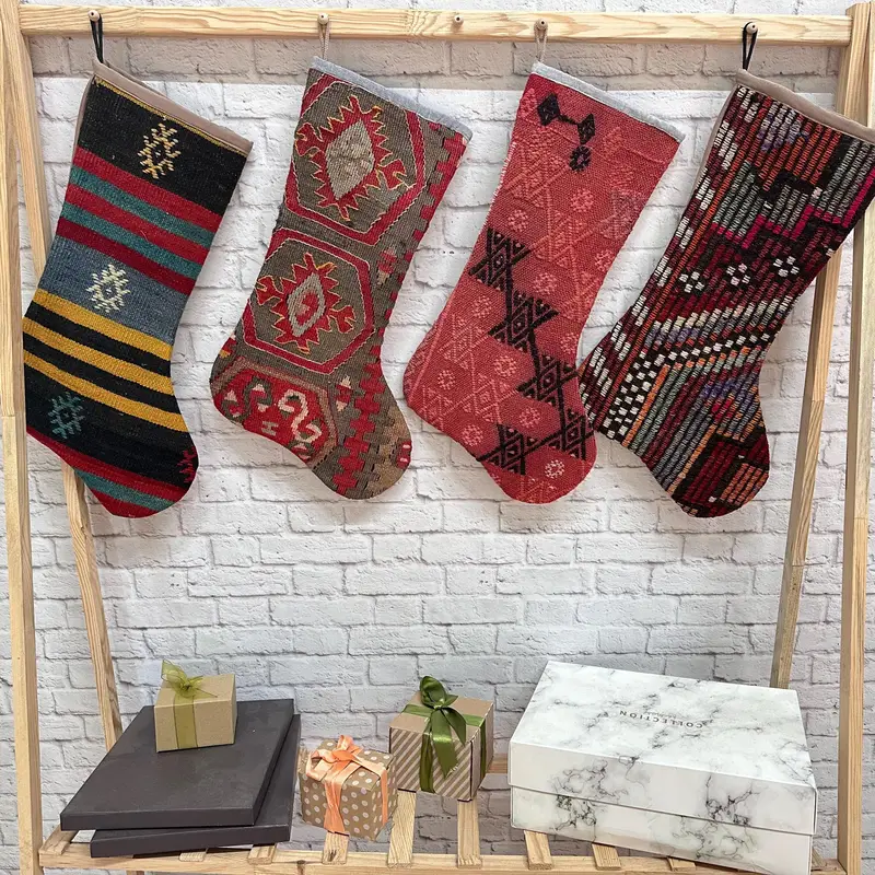 Gray and Pink Christmas Ornament Stocking, 8-inch Wide Festive Stocking