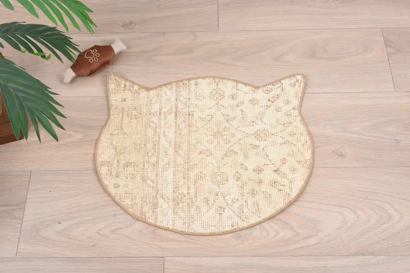 Non-Slip Beige & Brown Kilim Pet Mat, Durable Waterproof Pad