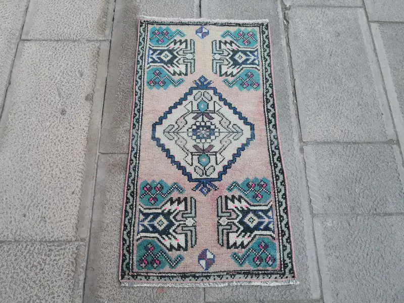 Green & Bronze Rectangle Rug, Handmade Wool Runner Rug