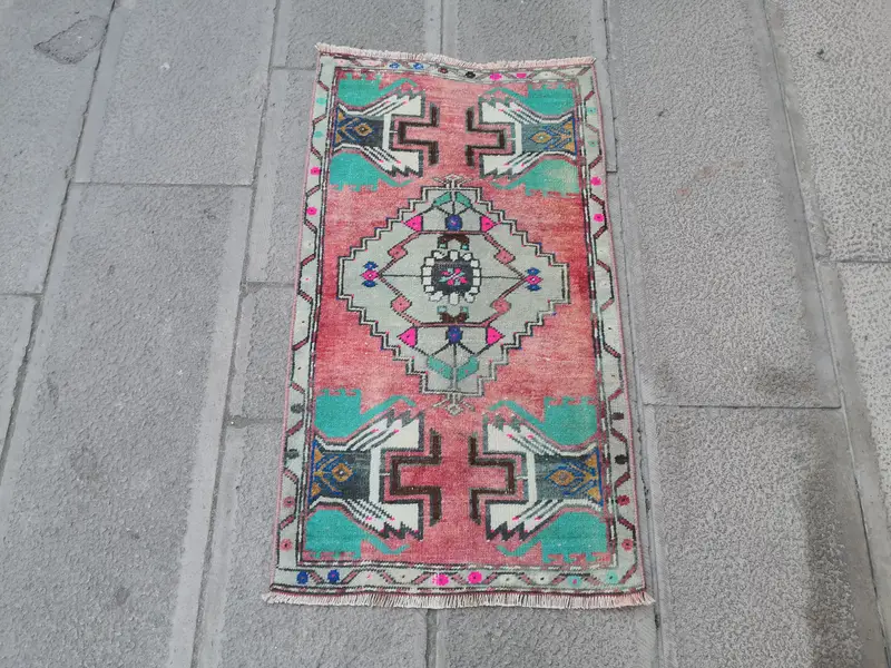 Red & Green Rectangle Rug, Handmade Holiday Doormat