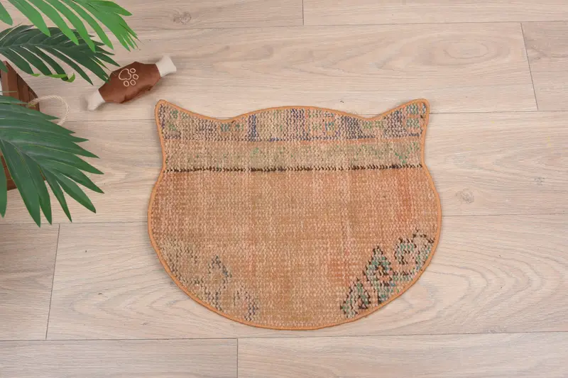 Red & Bronze Cat Shape Feeding Pad, Waterproof Pet Mat