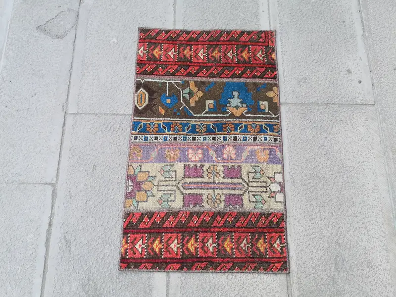 Red Rectangle Rug with Bronze Accents, Handmade Holiday Doormat
