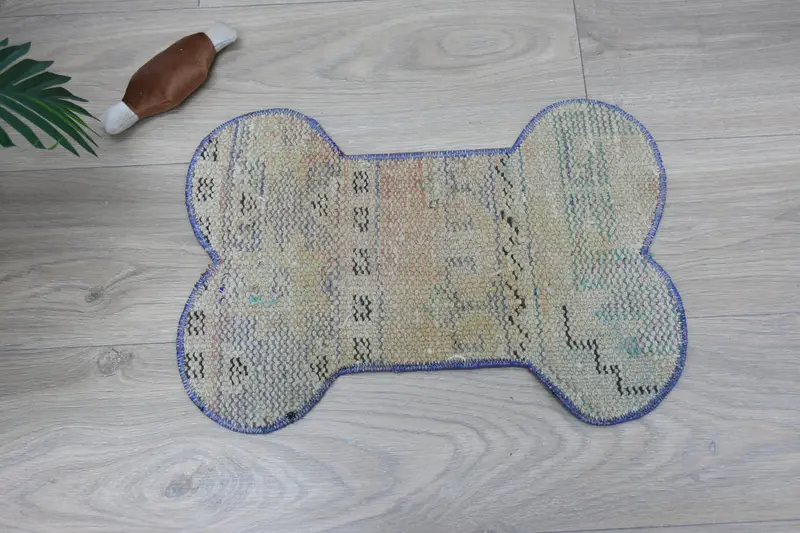 Blue & Beige Kilim Pet Pad, Absorbent & Waterproof Pet Mat