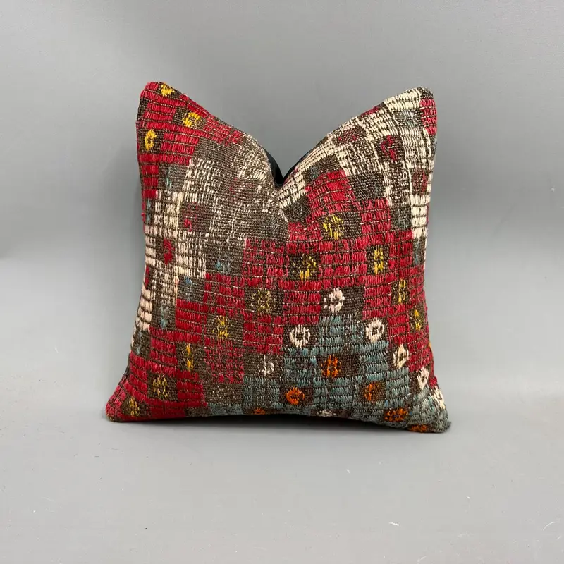 Red Southwestern Throw Pillow, Embroidered Vintage Kilim Pillow