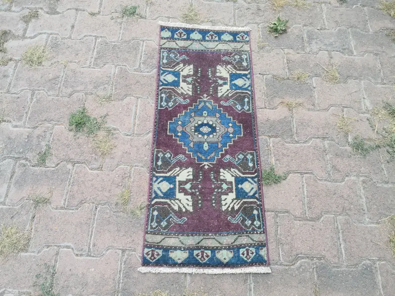 Purple & Bronze Rectangle Rug, Handmade Small Rug for Christmas & New Year