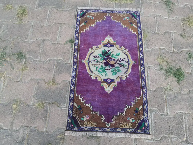 Handmade Purple & Brown Rectangle Rug, Perfect for Christmas & New Year
