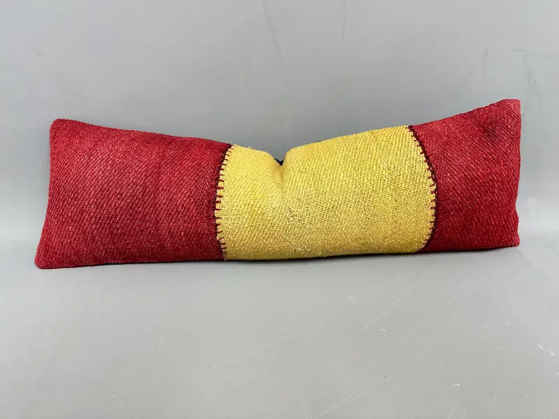 Red & Yellow Patchwork Throw Pillow, Vintage Embroidered Cushion