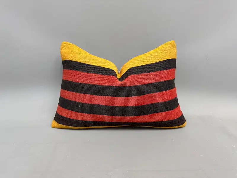 Red & Yellow Striped Throw Pillow, 16x24 Inch Embroidered Cushion