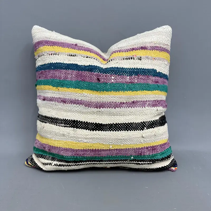 Brown & Purple Striped Throw Pillow, Vintage Embroidered Cushion
