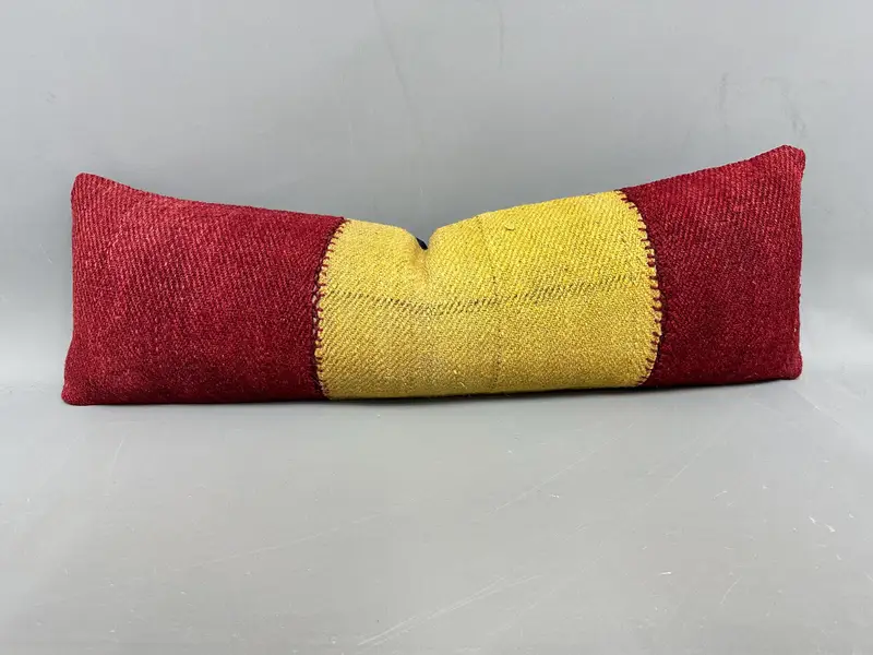 Red & Yellow Patchwork Throw Pillow, Vintage Embroidered Cushion