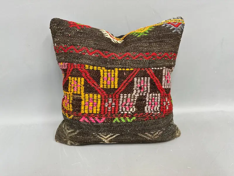 Southwestern Embroidered Throw Pillow, Vintage Brown Cushion