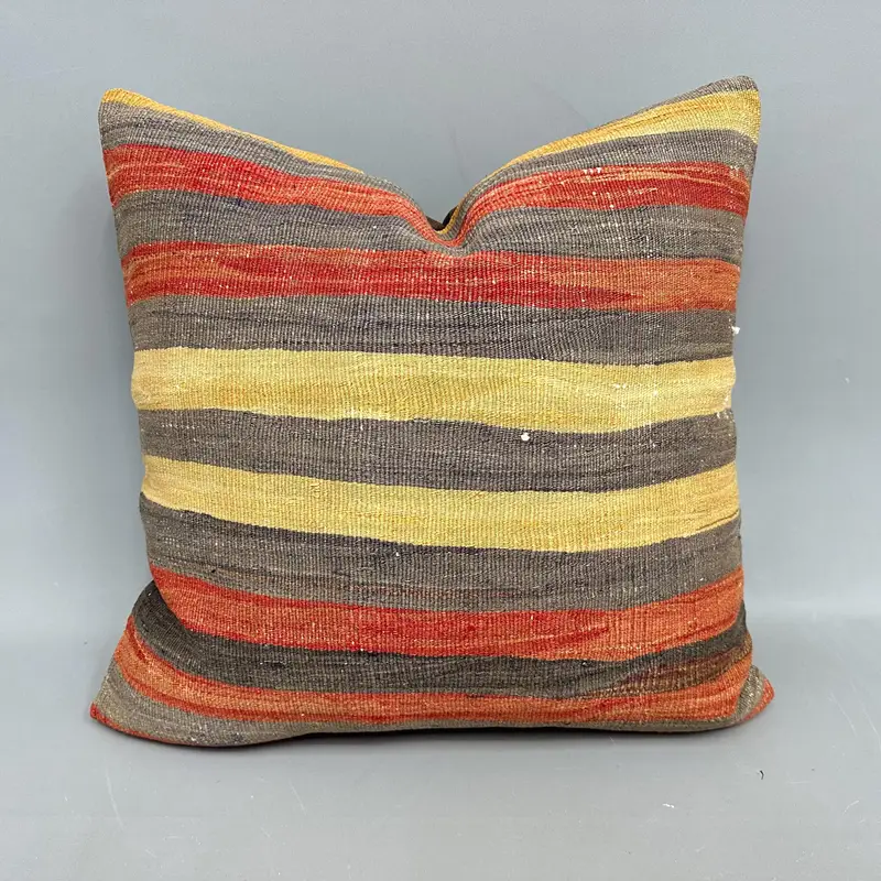 Red & Yellow Striped Throw Pillow, Vintage Kilim Cushion