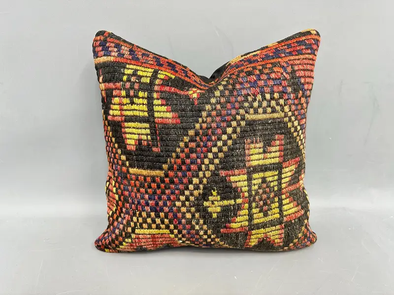 Handmade Southwestern Throw Pillow, Brown & Red Vintage Cushion