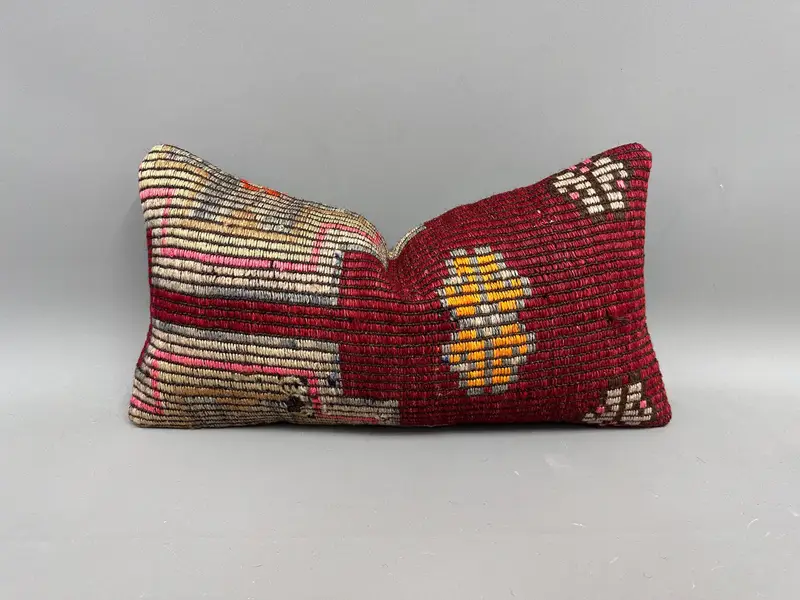 Handwoven Southwestern Kilim Pillow, Vintage Red & Yellow Throw Pillow