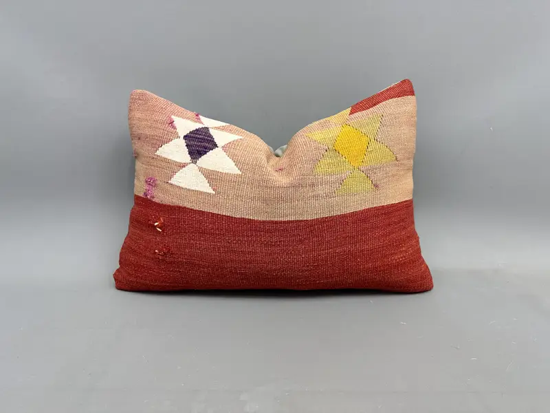 Red & Yellow Embroidered Throw Pillow, Handmade Geometric Pillow