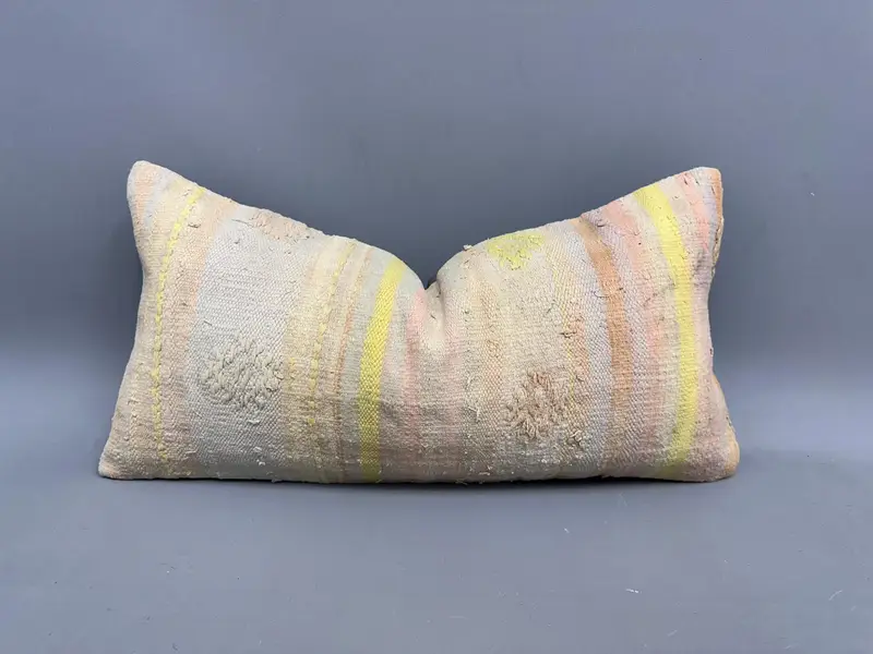 Beige & Yellow Striped Pillow, Embroidered Throw Pillow