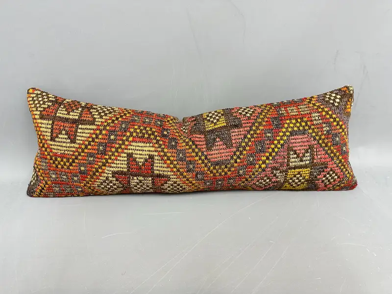Handwoven Southwestern Kilim Throw Pillow, 12x36 Vintage Cushion