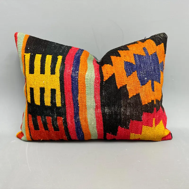 Orange & Red Geometric Throw Pillow, Handmade Vintage Pillow