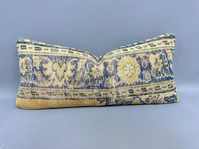 Handwoven Southwestern Kilim Pillow, Blue & Yellow Vintage Throw Pillow