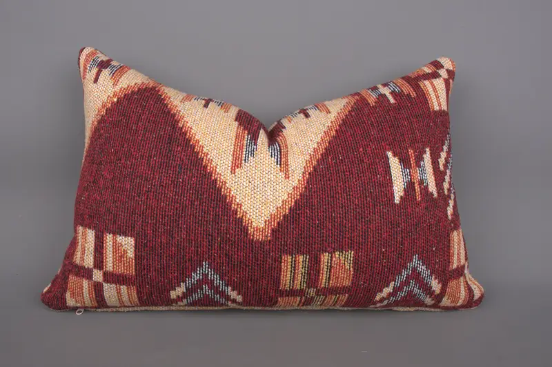 Red Southwestern Embroidered Throw Pillow, 16x24 Handmade Linen Cushion