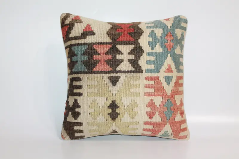 Handmade Blue & Red Kilim Throw Pillow,Geometric Wool Pillow