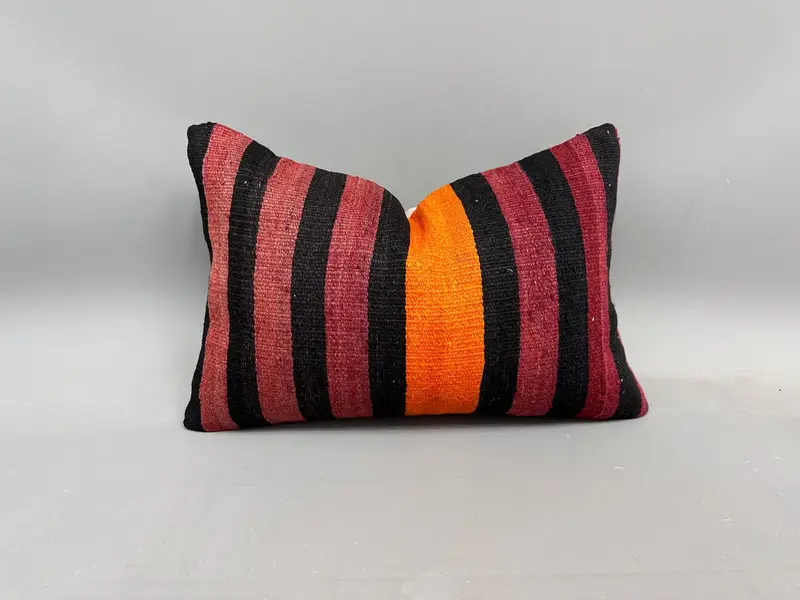 Red & Yellow Striped Throw Pillow, Handmade Vintage Cushion