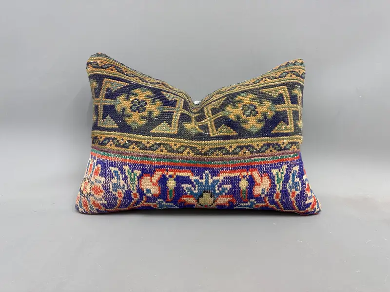 Blue & Green Patchwork Throw Pillow, Handmade Kilim Pillow