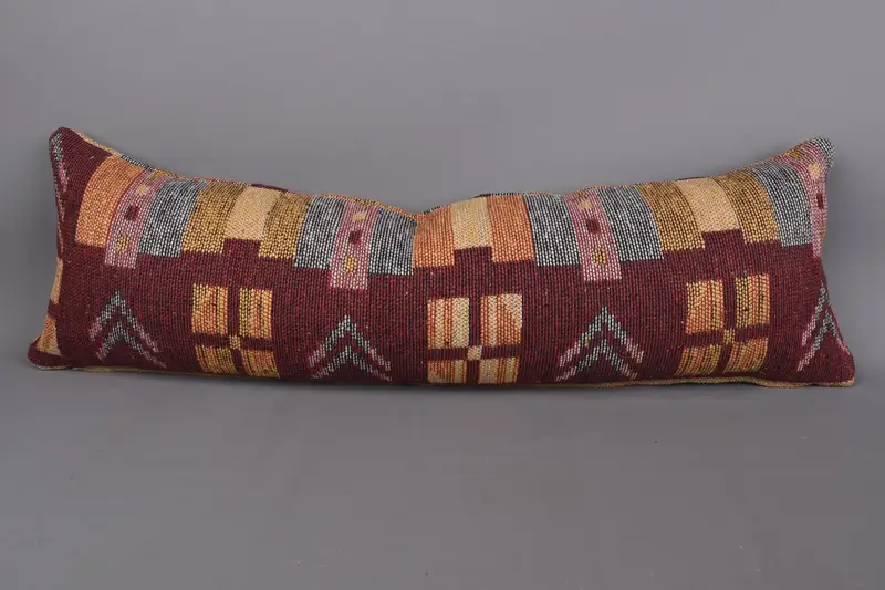 Red & Orange Embroidered Throw Pillow, Handmade Geometric Cushion