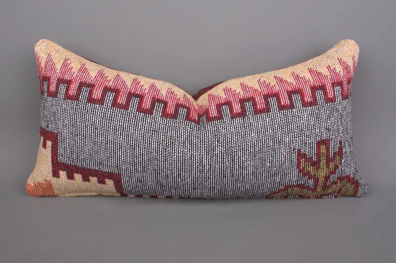Blue & Pink Geometric Throw Pillow, Handmade Vintage Linen Pillow