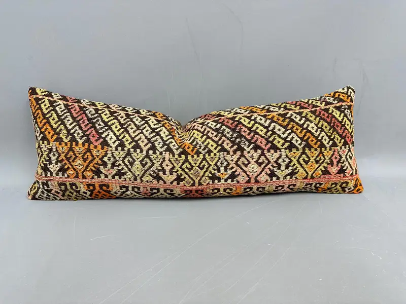 Handwoven Southwestern Kilim Throw Pillow, Vintage 12x36 Inch Cushion