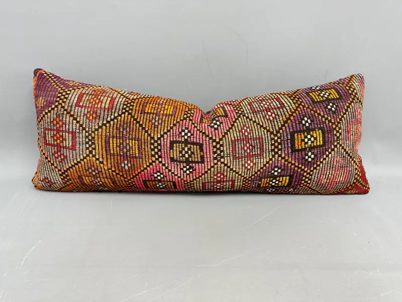 Embroidered Southwestern Throw Pillow, Vintage Pink & Orange Cushion