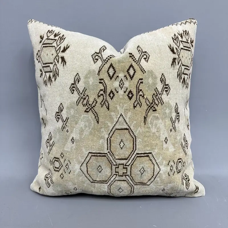 Beige & Green Southwestern Kilim Throw Pillow, Vintage Kilim Cushion