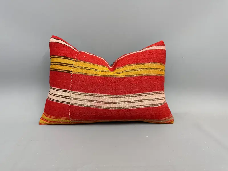 Red & Yellow Striped Throw Pillow, Handmade Vintage Pillow