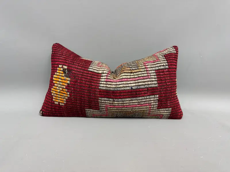 Embroidered Southwestern Throw Pillow, Vintage Red & Yellow Pillow