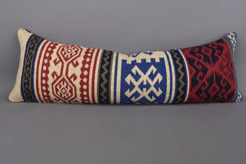 Blue & Yellow Geometric Throw Pillow, Vintage Kilim Pillow