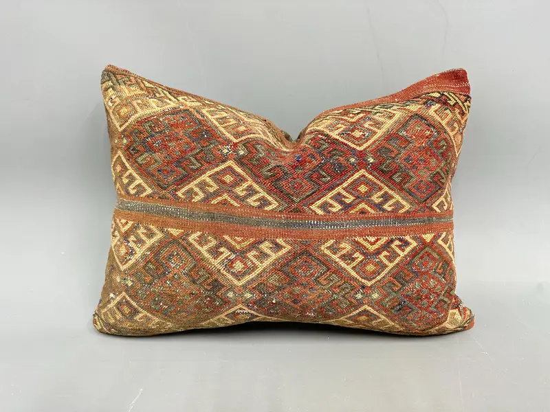 Red & Yellow Embroidered Throw Pillow, Vintage Geometric Cushion