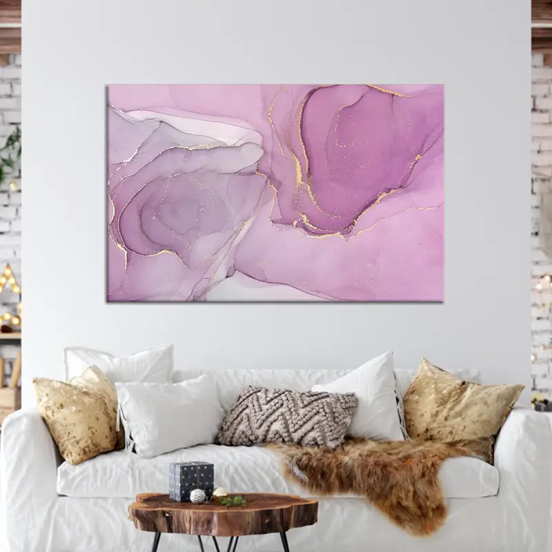 Contemporary Pink Marble & Gold Printed Canvas Art