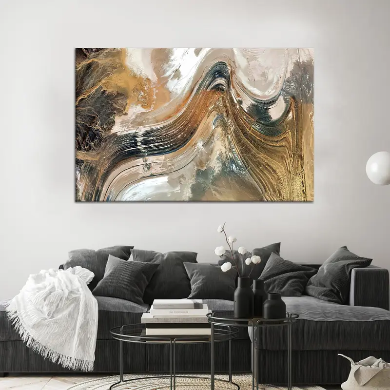 Elegant Brown Abstract Canvas: Contemporary Beige Art Print