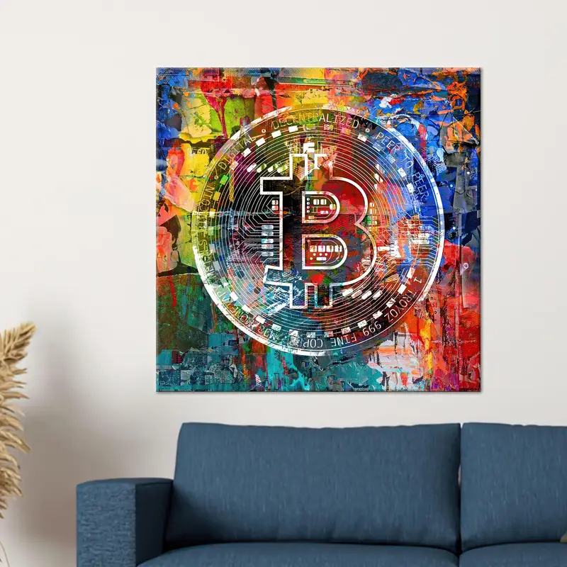 Elegant Canvas Print: Bitcoin's Colorful Cryptocurrency Art