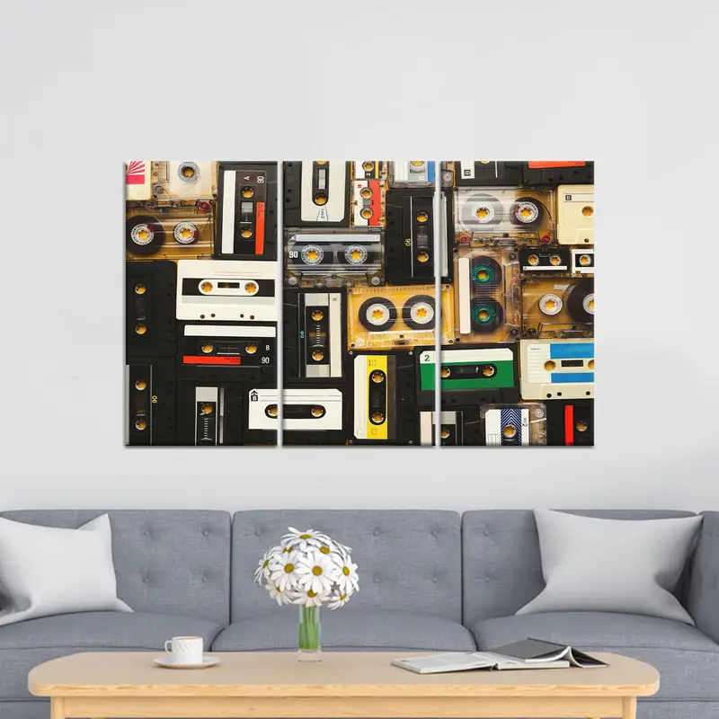 Vintage Cassette Printed Canvas: Nostalgic Audio Art Decor