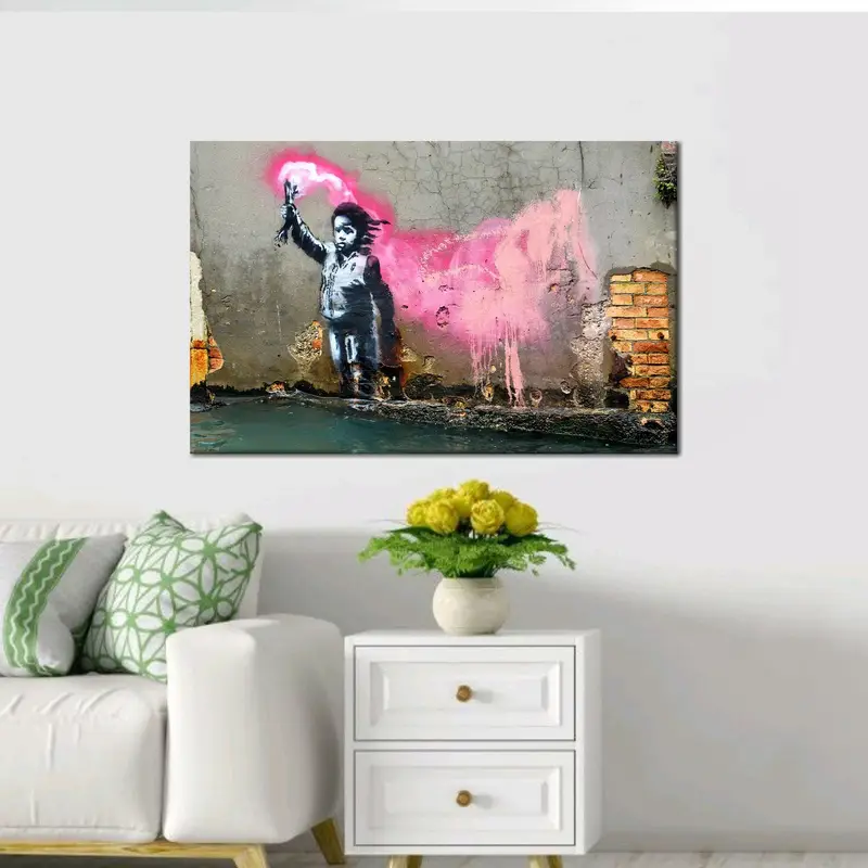 Banksy Graffiti Canvas: Vibrant Migrant Child Street Art Print