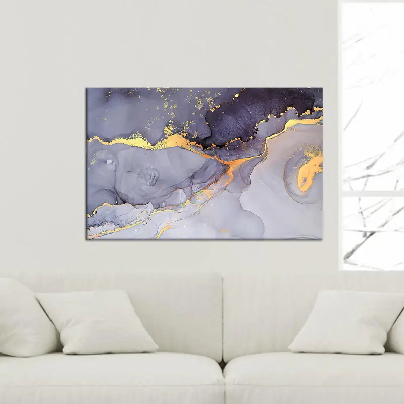 Elegant Gold Marble Shimmery Printed Canvas - Luxury Decor