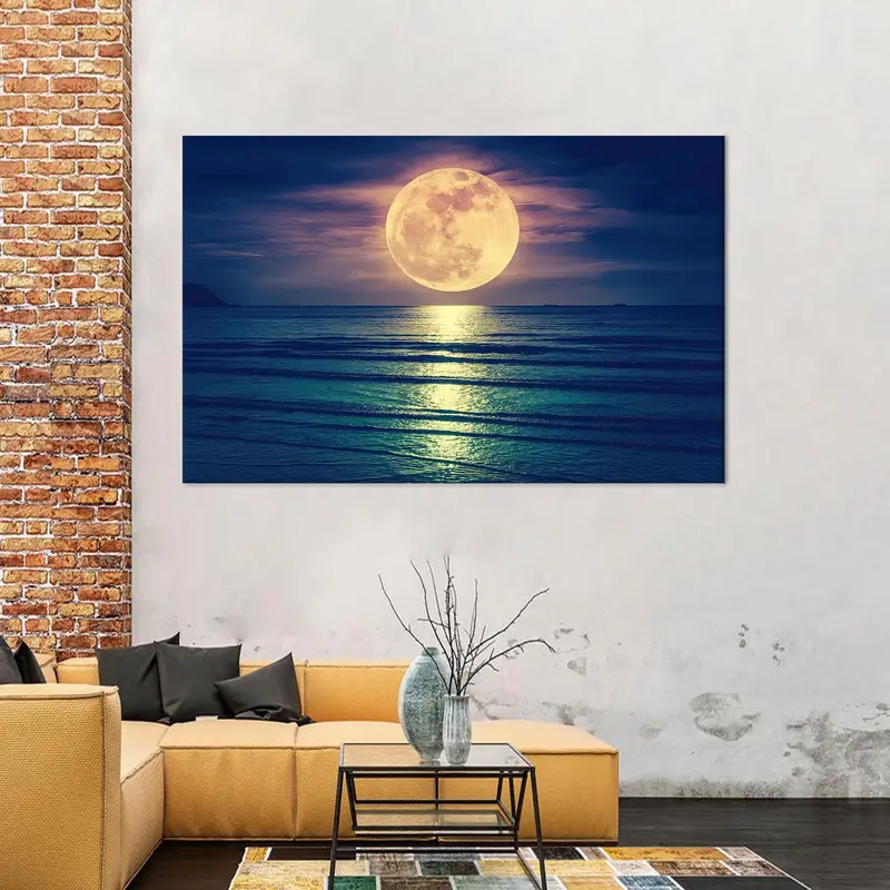 Contemporary Seascape Canvas: Big Moon & Sparkling Sea