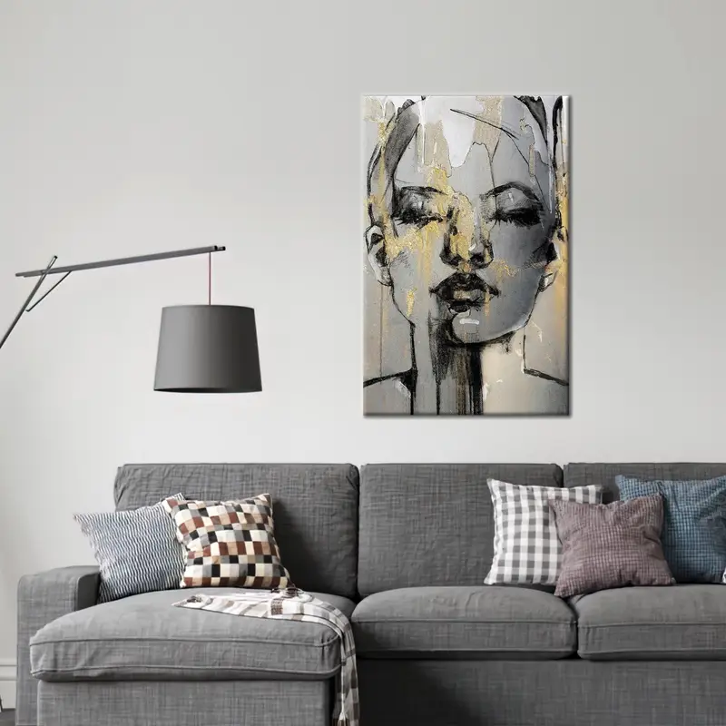 Contemporary Gold Woman Portrait Canvas - Elegant Trendy Decor