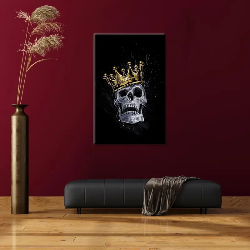 Trendy Black Skull Canvas: Gold Accents, Skeleton Theme
