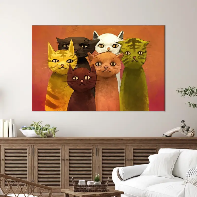 Modern Abstract Cat Canvas: Vibrant Decor for Cat Lovers