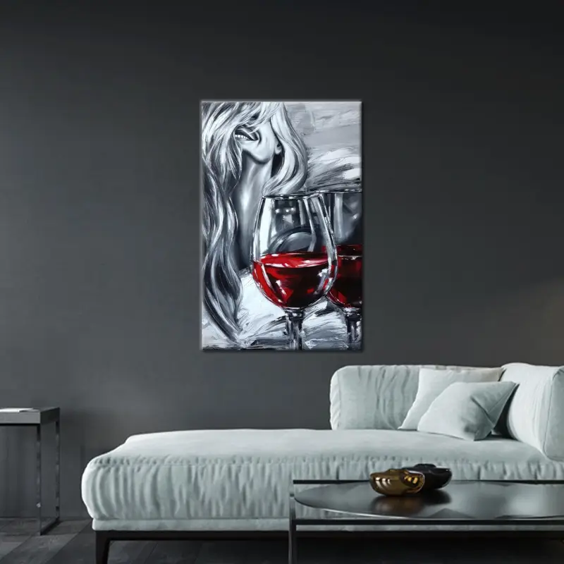 Elegant Red Woman Canvas: Vibrant Art for Girl Room