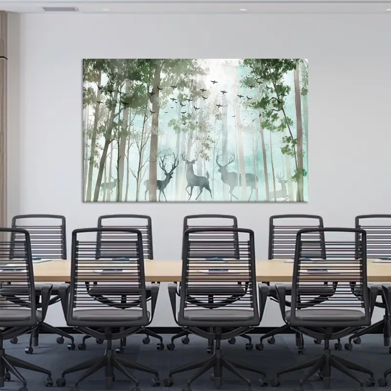 Modern Abstract Deer Forest Landscape Printed Canvas Art